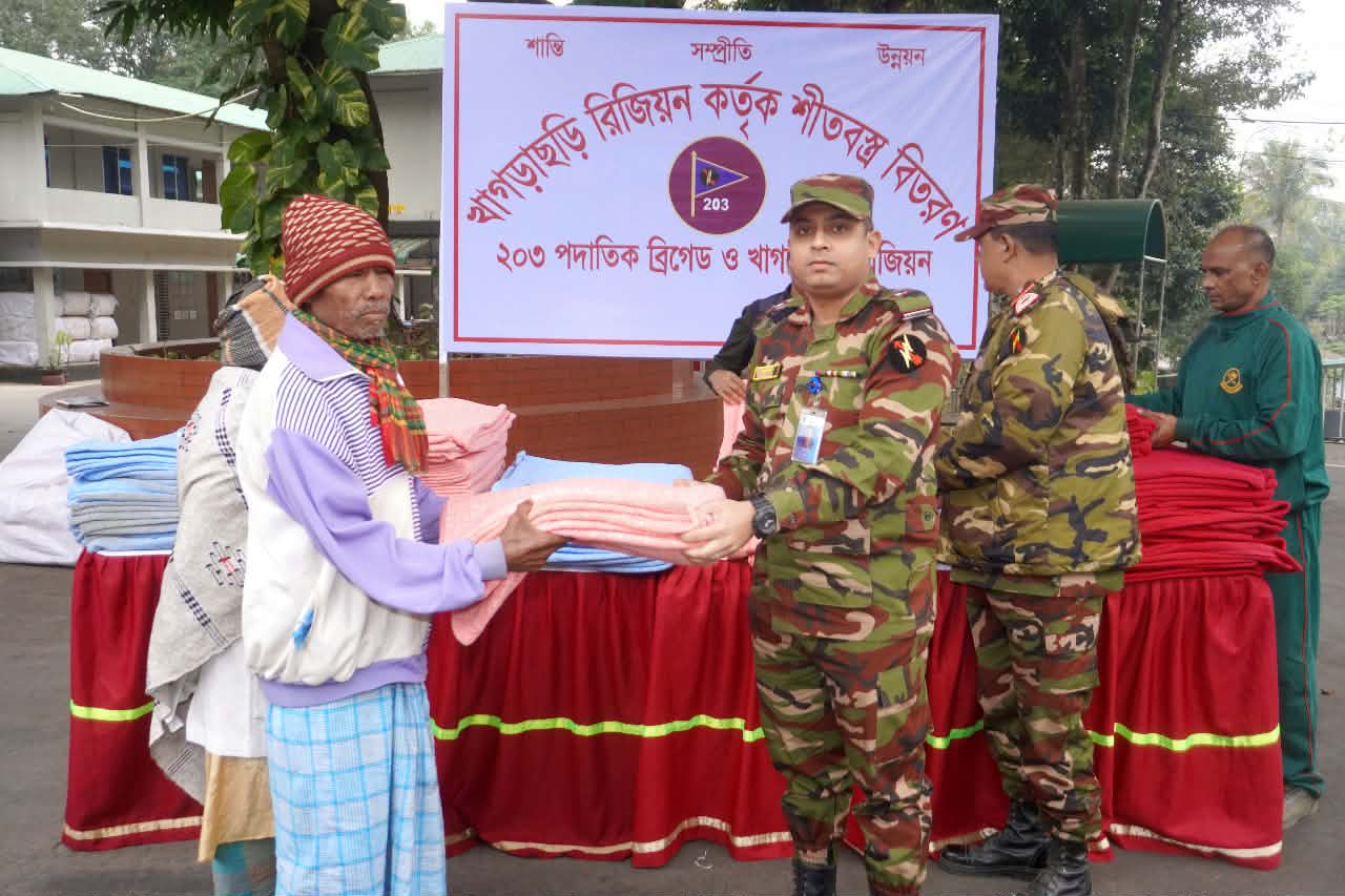 ৫ জানুয়ারী সোমবার দুপুরে খাগড়াছড়ি রিজিয়নের উদ্যোগে ২০৩ পদাতিক ব্রিগেড এর ডিকিউ মেজর মোঃ ওমর ফারুক সুমন কর্তৃক খাগড়াছড়ি শহরের আশেপাশের বিভিন্ন এলাকা থেকে আগত অসহায় ও দুস্থ মানুষের মাঝে মোট ৪১ (একচল্লিশ) টি শীতবস্ত্র (কম্বল) বিতরণ করা হয়।