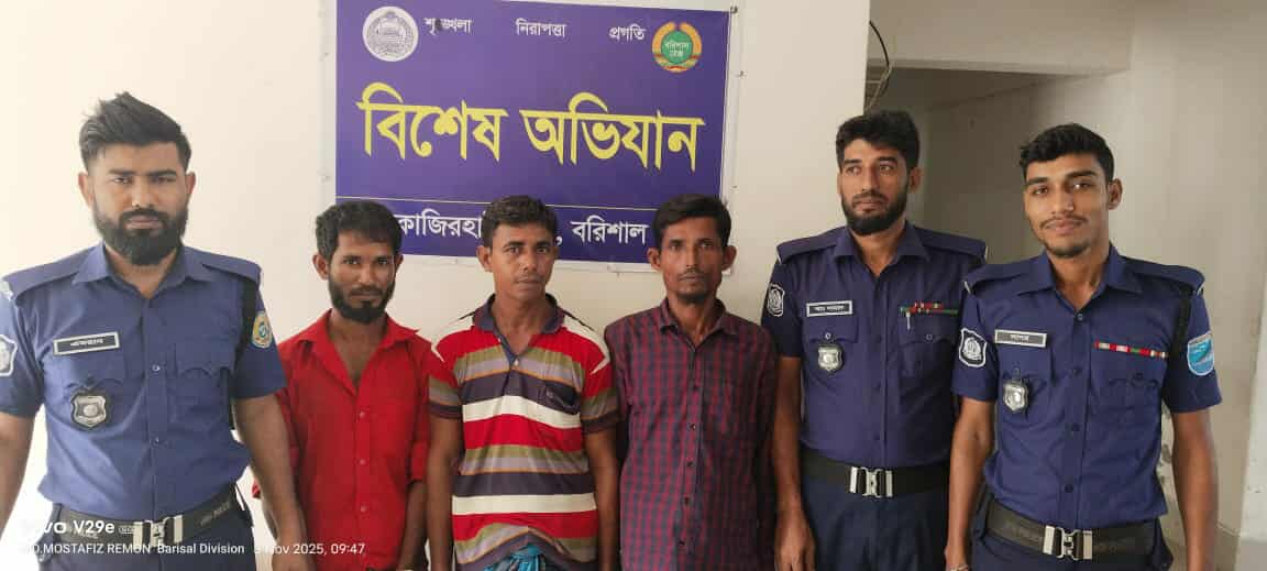 রাসেল কবির// বরিশাল জেলার কাজিরহাট থানার এস আই হৃদয় চাকলাদার সংগীয়ও ফোর্সের সহায়তায় ইং ০২/১১/২০২৫ তারিখ রাত ৭:৩০ মিনিটে কাজিরহাট থানাধীন ১৫নং আদর্শ নগর ইউনিয়নের উত্তর চর এককরিয়া ৫নং ওয়ার্ড জনৈক সিরাজ সিকদার এর চায়ের দোকানের সামনে অভিযান পরিচালনা করিয়া আসামী- লিটন গাজী(৩৫), পিতা-আইয়ুব আলী গাজী, সাং- ঘোড়াঘাট, ৬নং ওয়ার্ড, মোঃ মামুন গাজী (৩৩), পিতা- মৃত মালেক গাজী, সাং- উত্তর চর এককরিয়া, ৫নং ওয়ার্ড মোঃ খোকন রাড়ী (৩৫), পিতা- মৃত কাদের রাড়ী, সাং- উত্তর চর এককরিয়া, ৫নং ওয়ার্ড, ১৫নং আদর্শ নগর , থানা- কাজিরহাট, জেলা- বরিশালদের ধৃত করেন এবং তাহাদের দখল হইতে স্বচ্ছ পলিথিনে মোড়ানো এক পোটলা গাঁজা যাহার ওজন ১০(দশ) গ্রাম গাঁজা, যাহার অবৈধ মূল্য ৩০০ (তিনশত) টাকা উদ্ধার করেন। উক্ত ঘটনায় কাজিরহাট থানার মামলা নং-০১, জিআর-১২৩/২৫, তারিখ-০২/১১/২০২৫ খ্রিঃ। ধারা- মাঃ দ্রঃ নিঃ আইন, ২০১৮ এর ৩৬(১) সারণীর ১৯(ক)/৪১ রুজু করা হয়।