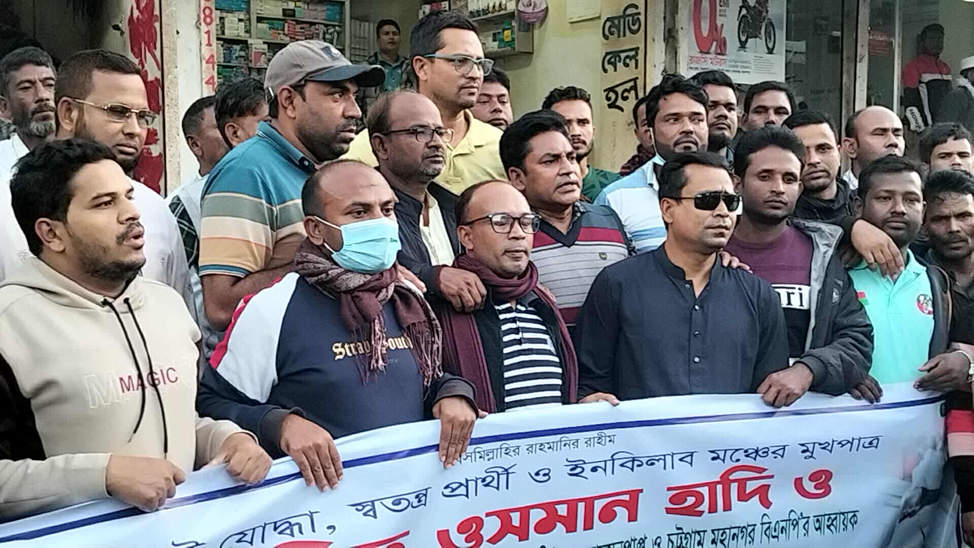 ইনকিলাব মঞ্চের মুখপাত্র ওসমান হাদীর উপর হামলার প্রতিবাদে মাদারগঞ্জে বিএনপির বিক্ষোভ মিছিল।