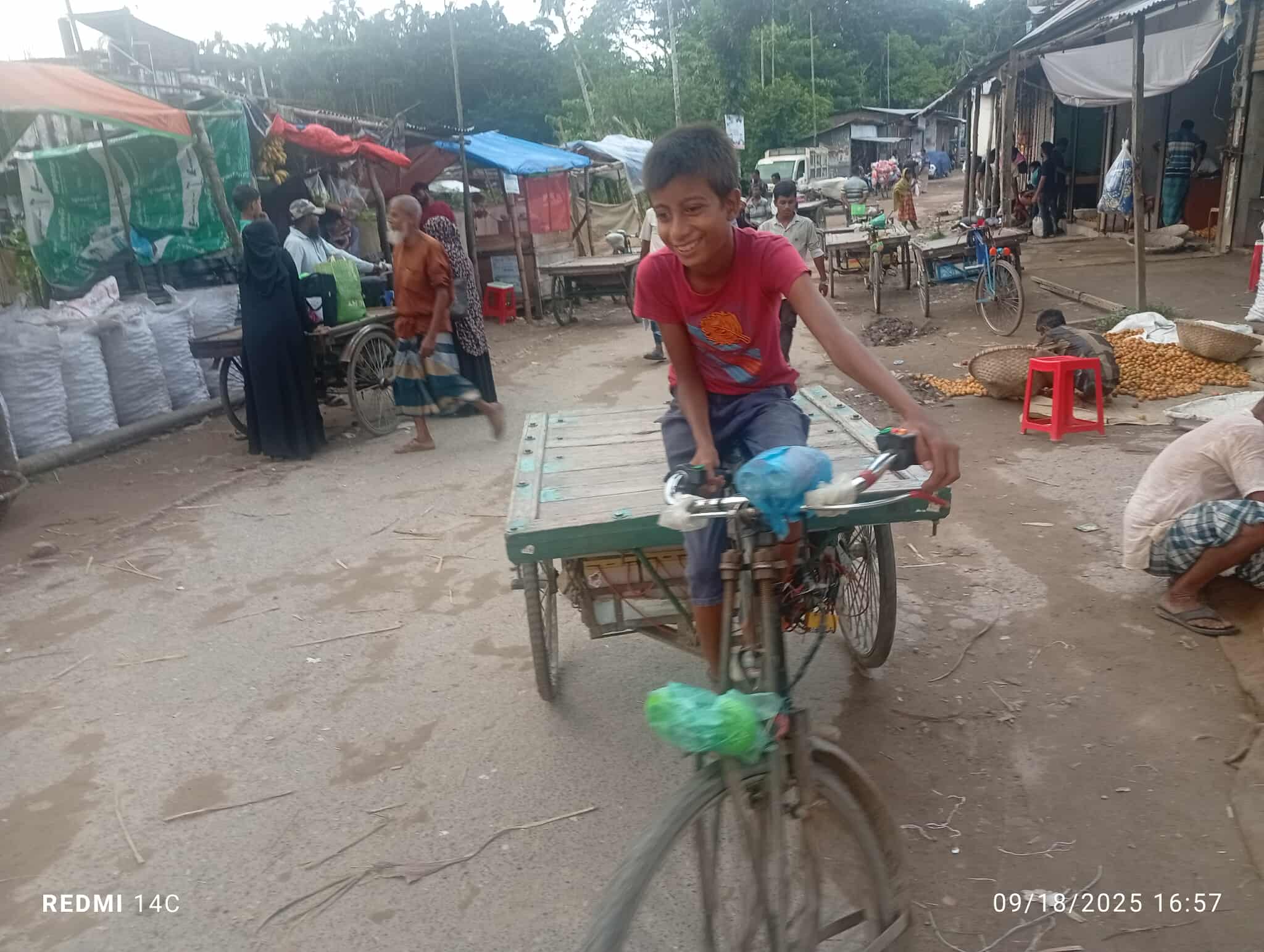 রাসেল কবির//মোগো সংসার মুই চালাই। ভ্যান গাড়ি চালিয়ে মোর বাবার অসুখ। এমন কথা জানিয়েছে বরিশাল জেলার মেহেন্দিগঞ্জ উপজেলা লতা ইউনিয়নের উদয়পুর গ্রামের কাঞ্চন মেলকারের ছোট ছেলে ইমন মেলকার। সরজমিনে খোঁজ নিয়ে জানা গেছে। কাঞ্চন মেলকার মাদারীপুর জেলার বাসিন্দা। দীর্ঘ কয়েক বছর পূর্বে কাজিরহাট থানার লতা ইউনিয়নের উদয়পুর গ্রামে তালুকদার বাড়ি জমির উপর ঘর উঠিয়ে বসবাস করছে। সংসারে ৩ ছেলের মধ্যে বড় ছেলে ঢাকা পুলিশের সোর্স হিসেবে কাজ করে। মেজো ছেলে ভাসনচর ইউনিয়নে ইউনিয়নে কর্ম করে। ছোট ছেলে কাজিরহাট এলাকায় ভ্যান চালিয়ে সংসার পরিচালনা করছে। প্রধান কর্তা বিভিন্ন রোগে আক্রান্ত। এলাকাবাসী সূত্রে জানিয়েছে ইমন মেলকার এই বয়সে শিশুর হাতে কলম খাতা এর পরিবর্তে ভ্যান গাড়ি চাকা ঘুরিয়ে অর্থ উপার্জন করে সংসার পরিচালনা করতে বাধ্য হচ্ছে। ইমন মেলকার তাদের সংসার জীবনী বিষয় আরো জানতে চাইলে সে জানায় আমার এই সংসার চালাতে হয়। দৈনিক ৩০০ থেকে ৪০০ টাকা আয় করি। প্রতিদিন সকাল বেলা ভ্যান গাড়ি নিয়ে কাজিরহাট ব্রিজের নিচে বসে থাকি এখান থেকে বিভিন্ন স্থানে ভ্যান গাড়ি নিয়ে যাত্রীদের বসিয়ে এক স্থান থেকে অন্য স্থানে টাকার বিনিময় দিয়ে আসি। সচেতন মহল বলছে শিশু শ্রম আইনে লঙ্গন অধিকার হচ্ছে।