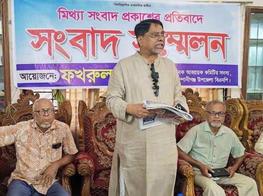 আবদুর রহিম: ২৭ সেপ্টেম্বর ২০২৫ ইং তারিখে দৈনিক মানব জমিনে প্রকাশিত নিউজ- ১১ খলিফার নিয়ন্ত্রণে মির্জা কাদের এর সাম্রাজ্য শিরোনামের প্রতিবাদে নোয়াখালী ৫ আসনের বিএনপির মনোনয়ন প্রত্যাশী ও কোম্পানীগঞ্জ উপজেলা বিএনপির সাবেক আহবায়ক কমিটির সদস্য মোহাম্মদ ফখরুল ইসলাম সংবাদ সম্মেলন করেছেন।