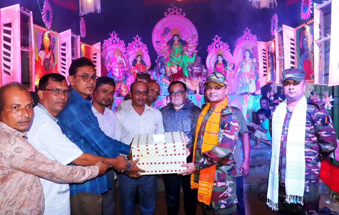 পরিদর্শনকালে ব্রিগেডিয়ার জেনারেল হাসান মাহমুদ মন্দির পূজা কমিটির নিকট উপহার সামগ্রী তুলে দেন। তিনি বলেন, “ধর্ম যার যার, উৎসব সবার। পূজা-উৎসব সমাজে সৌহার্দ্য ও সম্প্রীতি বজায় রাখতে সহায়ক।” পরে তিনি পূজা মণ্ডপ ঘুরে দেখেন এবং পূজা কমিটির সঙ্গে মতবিনিময় শেষে মন্দির ত্যাগ করেন।
