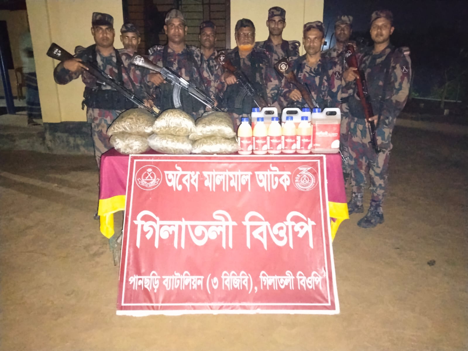 খাগড়াছড়ির পানছড়ি সীমান্ত এলাকায় অভিযান চালিয়ে বিভিন্ন বাংলাদেশি মালামাল আটক করেছে পানছড়ি ব্যাটালিয়ন (৩ বিজিবি)।