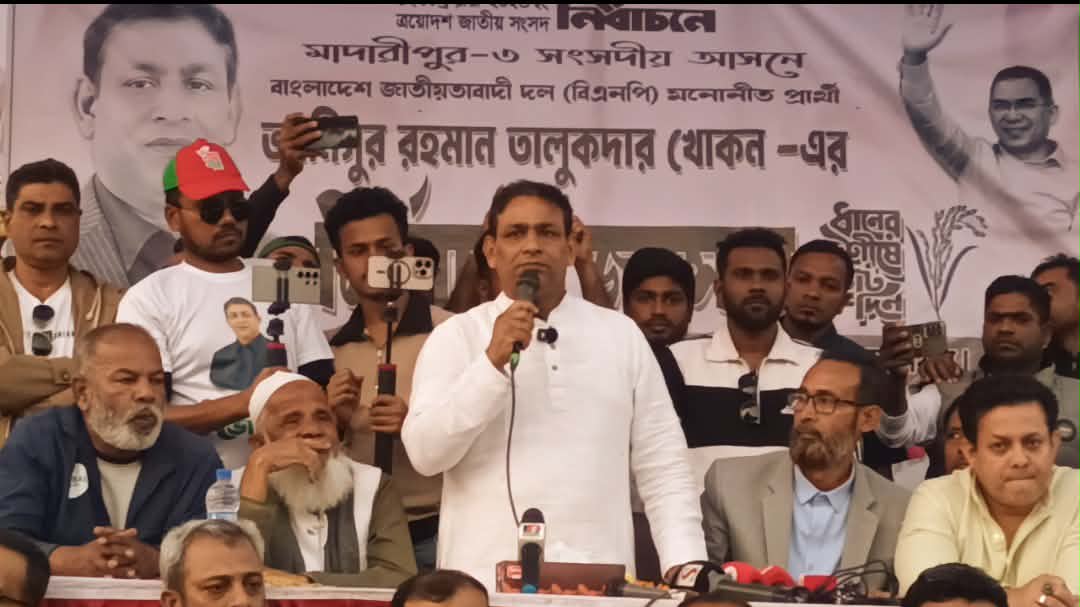 মাদারীপুর-৩ আসনের বিএনপির দলীয় সংসদ সদস্য প্রার্থী ও কেন্দ্রীয় বিএনপির সহ গণশিক্ষা বিষয়ক সম্পাদক আনিসুর রহমান খোকন তালুকদার বলেছেন,এবারের নির্বাচনে ধানের শীষ প্রতিক জিতলে বাংলাদেশ জিতবে, আর যদি আমরা হেরে যা-ই তাহলে বাংলাদেশ হেরে যাবে। কারণ আমরা যদি হেরে যা-ই তাহলে বাংলাদেশের স্বাধীনতার যারা বিরোধিতা করেছিল তাদের কাছে হারা হবে। আমাদের এই নির্বাচন আমাদের স্বাধীনতা সার্বভৌমত্বের অস্তিত্বের লড়াই, এই অস্তিত্বের লড়াই এই লড়াইয়ে আমাদের জিততে হবে ইনশাআল্লাহ আমরা জিতবো। শুক্রবার বিকেলে ডাসার উপজেলা বিএনপির উদ্যোগে পাথুরিয়ারপাড় সংলগ্ন বালুর মাঠে নির্বাচনী জনসভায় প্রধান অতিথির বক্তব্যে তিনি এসব কথা বলেন।