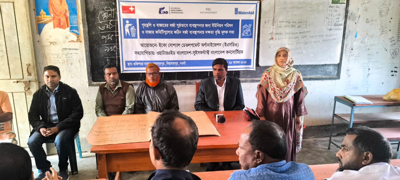 ইকো-সোশ্যাল ডেভলপমেন্ট অর্গানাইজেশন (ইএসডিও)-এর গোফরইমপ্যাক্ট কর্মসূচির আয়োজনে, সুইজারল্যান্ড সরকারের অর্থায়নে এবং ওয়াটারএইড বাংলাদেশ ও সুইসকন্টাক্ট বাংলাদেশের সহযোগিতায় ২৯ নভেম্বর ২০২৫ইং তারিখে বাহাদুরপুর ইউনিয়নের গুজিশহর বাজারে গৃহস্থলি ও বাজারের বর্জ্য সুষ্ঠুভাবে ব্যবস্থাপনার জন্য ইউনিয়ন পরিষদ ও বাজার কমিটিগুলোর কঠিন বর্জ্য ব্যবস্থাপনা বিষয়ক দক্ষতা বৃদ্ধি মূলক সভা অনুষ্ঠিত হয়।