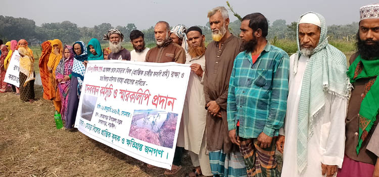 নড়াইলের লোহাগড়া পৌরসভার মোচড়া বিলের তিন ফসলি কৃষি জমি দখল করে বাঁধ দিয়ে ও ঘের নির্মান করার অভিযোগ উঠেছে মোচড়া গ্রামের রফিক শেখের বিরুদ্ধে। এর প্রতিবাদে প্রশাসনের হস্তক্ষেপ চেয়ে ক্ষতিগ্রস্ত পরিবার ও এলাকাবাসী সোমবার (২৬জানুয়ারি) দুপুরে মোচড়া বিলে মানববন্ধন করেন এবং জেলা প্রশাসক বরাবর লিখিত অভিযোগ দিয়েছেন।