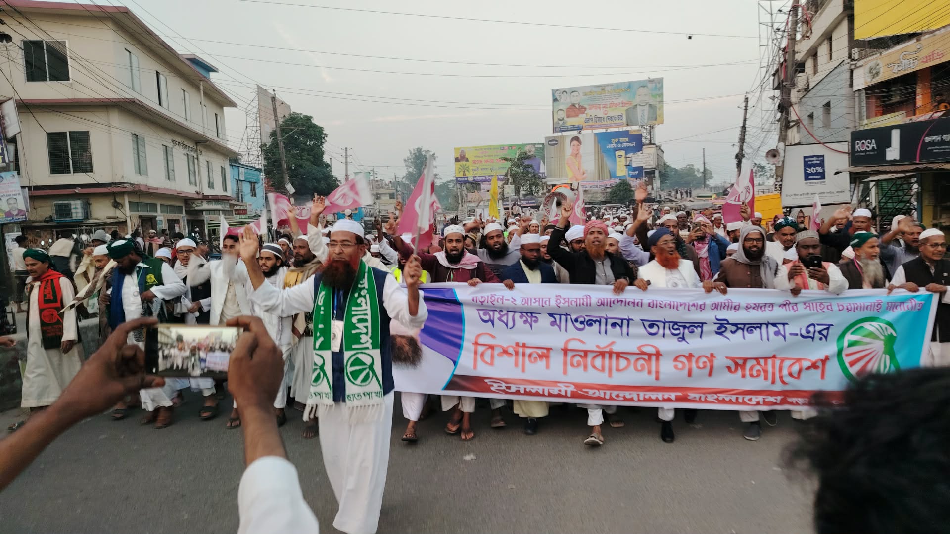 নড়াইল-২ আসনে ইসলামী আন্দোলন বাংলাদেশের মনোনীত প্রার্থী অধ্যক্ষ মাওলানা তাজুল ইসলামের বিশাল নির্বাচনী সমাবেশ ও গণমিছিল অনুষ্ঠিত হয়েছে। বুধবার (১০ ডিসেম্বর) বিকেলে পুরাতন বাসটার্মিনাল মুক্তমঞ্চ চত্বরে প্রথমে সমাবেশ অনুষ্ঠিত হয়। সমাবেশ শেষে পুরাতন বাসটার্মিনাল চত্বর থেকে শহরের রূপগঞ্জ এলাকায় বিশাল মিছিল বের হয়।