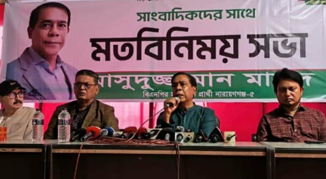 রাজনৈতিক নানা জল্পনা-কল্পনার মধ্যেই নারায়ণগঞ্জ-৫(বন্দর-সদর)আসনে আসন্ন জাতীয় সংসদ নির্বাচনের মাঠ থেকে সরে দাঁড়ানোর ঘোষণা দিয়েছেন বাংলাদেশ জাতীয়বাদী দল বিএনপির মনোনীত এমপি পদপ্রার্থী মাসুদুজ্জামান ওরফে মডেল মাসুদ।হঠাৎ এ সিদ্ধান্তে স্থানীয় রাজনীতিতে নতুন করে আলোচনা শুরু হয়েছে।মঙ্গলবার দুপুর ১:৩০ মিনিটে নারায়ণগঞ্জ প্রেসক্লাবে সাংবাদিকদের সাথে সংবাদ সম্মেলন করে তিনি এ ঘোষণা দেন।শীতলক্ষ্যা নদীর তীরঘেঁষা শিল্পনগরী নারায়ণগঞ্জ বরাবরই রাজনীতি,অর্থনীতি ও সংস্কৃতির এক গুরুত্বপূর্ণ কেন্দ্র।এই জেলার ৫ নম্বর আসনটি দীর্ঘদিন ধরে রাজনৈতিকভাবে স্পর্শকাতর ও কৌশলগতভাবে গুরুত্বপূর্ণ হিসেবে বিবেচিত।নির্বাচনের প্রাক্কালে প্রার্থীর সরে দাঁড়ানো তাই স্বাভাবিকভাবেই ভোটার ও রাজনৈতিক মহলে কৌতূহল সৃষ্টি করেছে।সরে দাঁড়ানো প্রার্থী মাসুদুজ্জামান ওরফে মডেল মাসুদ এক সংক্ষিপ্ত বক্তব্যে বলেন-সবার আগে পরিবার ও নিরাপত্তা।আমার পরিবার আমার নিরাপত্তা নিয়ে শংকিত।বিগত কিছুদিনের ঘটনায় পরিবারের সদস্যরা ব্যথিত।এছাড়া কিছু নিরাপত্তাজনিত ইস্যু আছে।এটা আমার ব্যক্তিগত সিদ্ধান্ত, দলীয় সিদ্ধান্ত না।মডেল মাসুদ নারায়ণগঞ্জের মানুষের বৃহত্তর স্বার্থ, রাজনৈতিক বাস্তবতা এবং দলীয় ঐক্যের কথা বিবেচনা করেই এই সিদ্ধান্ত নিয়েছেন।ভবিষ্যতেও তিনি এলাকার উন্নয়ন ও মানুষের পাশে থাকার প্রত্যয় ব্যক্ত করেন।এদিকে স্থানীয় রাজনৈতিক বিশ্লেষকদের মতে,এই সিদ্ধান্ত নির্বাচনের সমীকরণে নতুন মাত্রা যোগ করবে।শিল্পাঞ্চল, বন্দর, ব্যবসা-বাণিজ্য ও শ্রমজীবী মানুষের জেলা হিসেবে পরিচিত নারায়ণগঞ্জে ভোটের রাজনীতি বরাবরই বহুমাত্রিক।একজন প্রার্থীর সরে দাঁড়ানো অন্য প্রার্থীদের প্রচারণায় প্রভাব ফেলতে পারে বলে মনে করছেন তারা।নারায়ণগঞ্জের সাধারণ ভোটারদের অনেকেই মনে করছেন,যেই প্রার্থীই নির্বাচনে থাকুক না কেন, তাদের প্রত্যাশা একটাই-উন্নয়ন,কর্মসংস্থান,যানজট নিরসন ও শান্তিপূর্ণ রাজনৈতিক পরিবেশ।এখন দেখার বিষয়, এই সরে দাঁড়ানোর সিদ্ধান্ত শেষ পর্যন্ত নারায়ণগঞ্জ-৫(বন্দর-সদর)আসনে বাংলাদেশ জাতীয়বাদী দল থেকে নতুন চমক কি আসে।