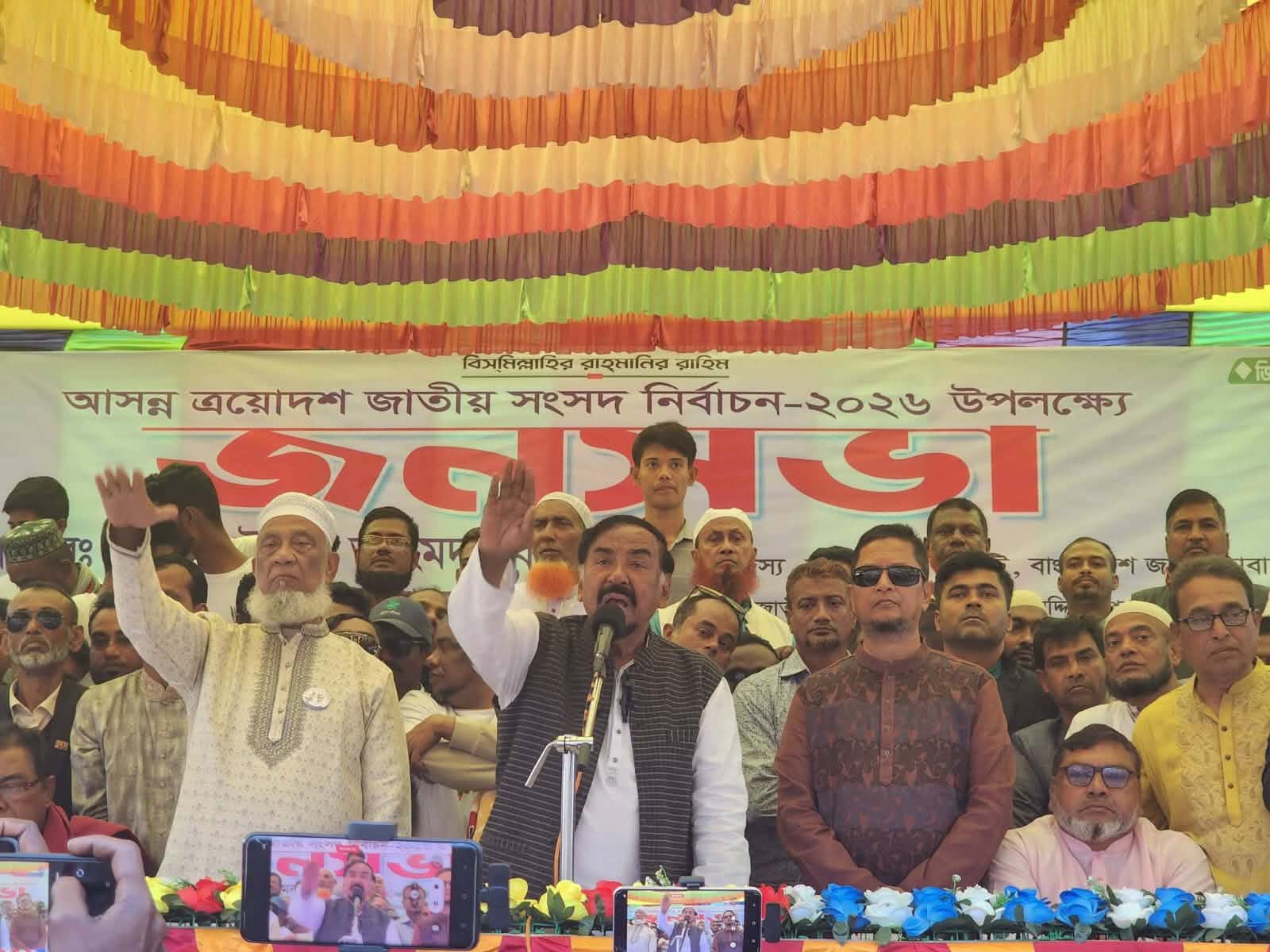ভোলার তজুমদ্দিন উপজেলায় ত্রয়োদশ জাতীয় নির্বাচনের প্রচারনার শেষ সমাবেশ করেছে উপজেলা বিএনপি। উক্ত সমাবেশে বাংলাদেশ জাতীয়তাবাদী দল বিএনপির জাতীয় স্হায়ী কমিটির সদস্য জনাব মেজর অবঃ হাফিজ উদ্দিন আহমেদ বীর বিক্রম বক্তব্য বলেন বিএনপির জিয়াউর রহমান ও বেগম খালেদা জিয়ার দল এদেশে যত উন্নয়ন হয়েছে বিএনপি সরকারের আমলে হয়েছে।আপনারা আমাকে লালমোহন তজুমদ্দিনে ৬ বার এমপি বানিয়ে সংসদে পাঠিয়েছেন ।আমি তজুমদ্দিনে বিনা পয়সায় আপনাদেরকে চরে জমি দিয়েছি।এই দেশে বিএনপির মত আগে কোন সরকার উন্নয়ন করেনি।ত্রয়োদশ জাতীয় নির্বাচন তারেক রহমানের নেতৃত্ব বিএনপি বিজয় হলে লালমোহন-তজুমদ্দিন কে চাঁদাবাজ,সন্ত্রাস ও মাদক মুক্ত করা হবে বলে ও জানান।হাফিজ উদ্দিন তার বক্তব্যে বলেন,জামায়াত ইসলামীর মুক্তিযুদ্ধের সময়ের ভূমিকা নিয়েও প্রশ্ন তোলেন এবং বহু মা বোনের ইজ্জৎ কেরে নিয়েছে বলে মন্তব্য করেন।তারা এখন আবার নির্বাচন নিয়ে ষড়যন্ত্র করছে,এরা চুরি করে ভ্যালটে ছিল মেরে ক্ষমতায় আসতে চায়। তবে এদেশের জনগন তা হতে দিবে না। এরা নারীদের ক্ষমতায় দেখতে চায় না বরং নারীদের ঘড়ে বন্দী করে রাখতে চায়। আগামী নির্বাচনে বিএনপি যদি ক্ষমতায় আসে তাহলে নারী স্বাধীন ভাবে চলতে পারবে।এবং প্রতি মাসে মা বোনের হাত খরচ বাবদ প্রেমিলি কার্ডের মাধ্যমে ২৫০০ টাকা করে দেওয়া হবে।উক্ত সমাবেশ সভাপতিত্ব করেন তজুমদ্দিন উপজেলা বিএনপির সভাপতি আলহাজ্ব গোলাম মোস্তফা মিন্টু, সমাবেশ পরিচালনা করেন উপজেলা বিএনপির সাধারণ সম্পাদক ওমর আসাদ রিন্টু, সমাবেশে উপস্থিত ছিলেন তজুমদ্দিন উপজেলা বিএনপি ও অঙ্গসংগঠনের নেতৃবৃন্ধ।