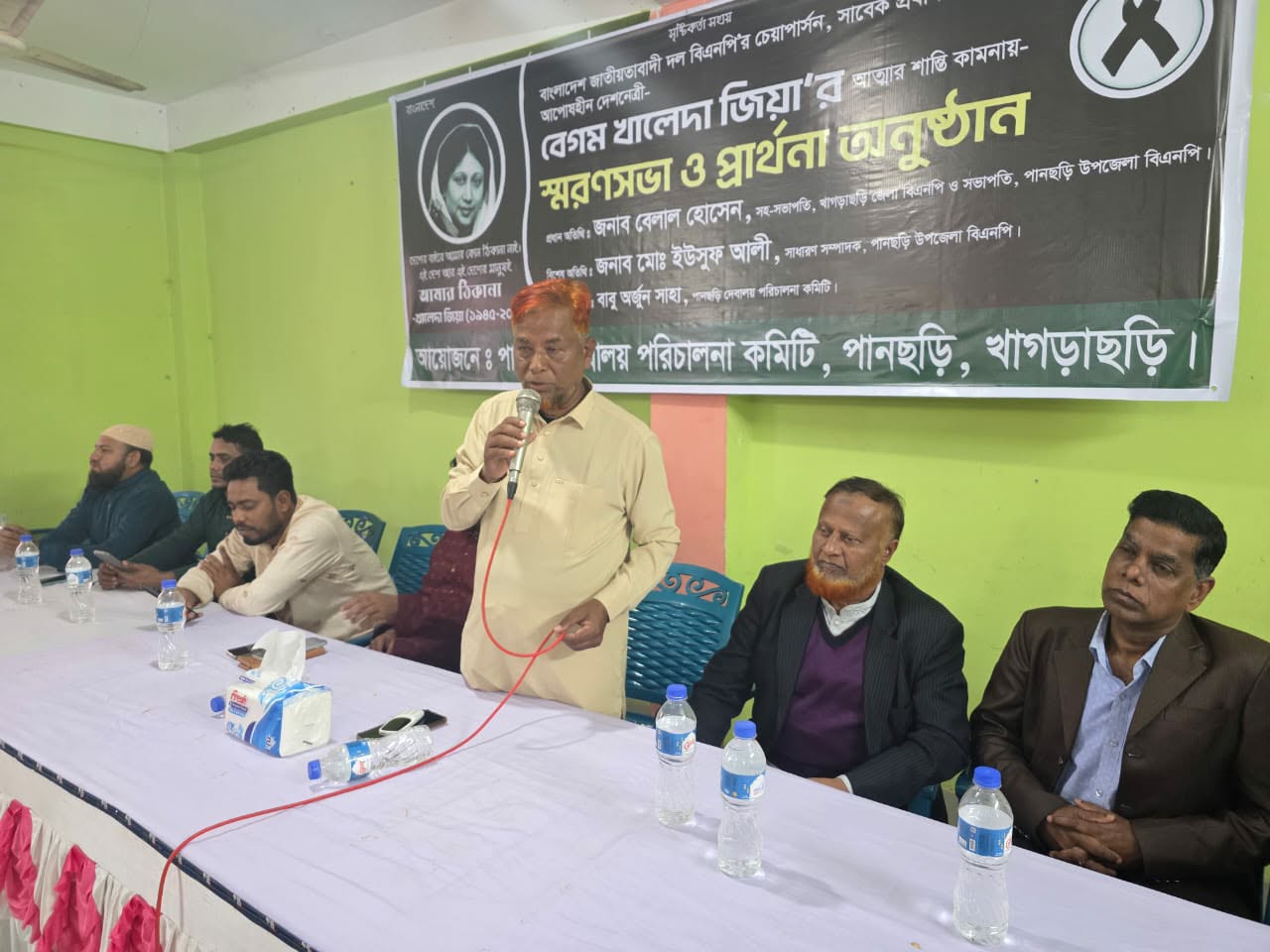 ১৬ জানুয়ারী শুক্রবার বিকাল ৩টায় পানছড়ি বাজার কেন্দ্রীয় দেবালয় মন্দিরে অনুষ্ঠানে প্রধান অতিথি হিসেবে উপস্থিত থেকে বক্তব্য রাখেন, জেলা বিএনপির সহ সভাপতি ও পানছড়ি উপজেলা বিএনপির সভাপতি মোঃ বেলাল হোসেন। মন্দির পরিচালনা কমিটির সভাপতি বাবু অর্জুন সাহার সভাপতিত্বে সভায় বিশেষ অতিথি হিসেবে উপস্থিত ছিলেন, উপজেলা বিএনপির সিঃ সহসভাপতি মোঃ সিরাজুল ইসলাম, সাধারণ সম্পাদক মোঃ ইউসুফ আলী, যুগ্ন সাধারণ সম্পাদক মোঃ তোফাজ্জল হোসেন। অনুষ্ঠানে স্বাগত বক্তব্য রাখেন মন্দির পরিচালনা কমিটির সাধারণ সম্পাদক বাবু বিমান কান্তি দেব। অনুষ্ঠানটি সঞ্চালনা করেন কমিটির সহ সভাপতি শুভাষ দেব।অনুষ্ঠানে সনাতন ধর্মাবলম্বীরা বেগম খালেদা জিয়ার আত্বার শান্তি কামনায় প্রার্থনা করেন।