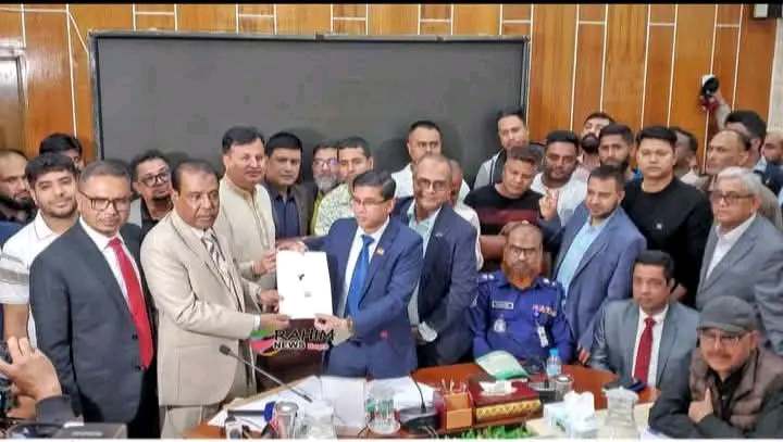 ত্রয়োদশ জাতীয় সংসদ নির্বাচনে বগুড়া সদর আসনে বিএনপির চেয়ারম্যান তারেক রহমানে ধানের শীষের প্রতীক জেলা রিটানিং কর্মকর্তা ও জেলা প্রশাসক তৌফিকুর রহমানের কাছে থেকে গ্রহণ করছেন জেলা বিএনপির সভাপতি রেজাউল করিম বাদশা।