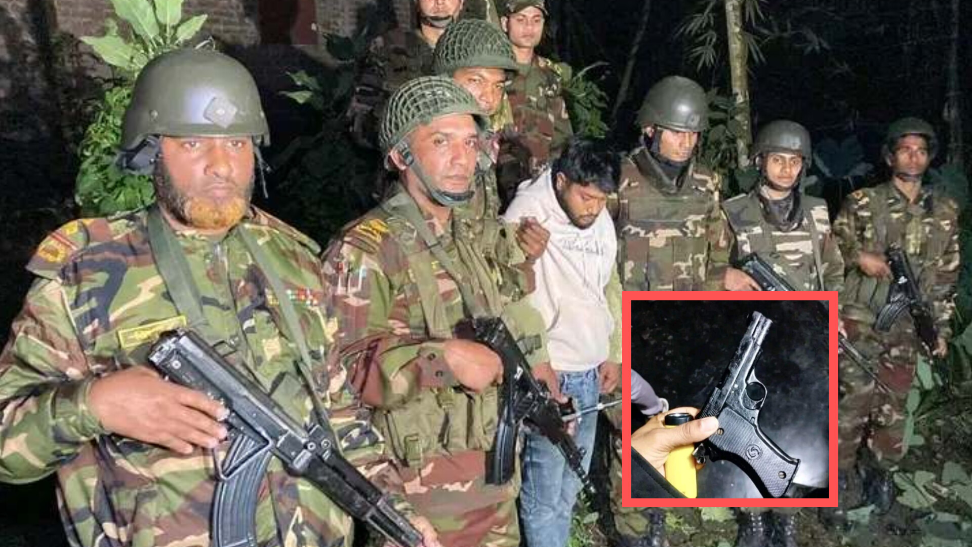 অভিযানের সময় সাজ্জাদ হোসেন (২৭) নামে এক ব্যক্তির বাড়ির পাশের একটি ডোবা থেকে অস্ত্রটি উদ্ধার করা হয়। সাজ্জাদ হোসেন আহাদ আলীর ছেলে বলে জানা গেছে।