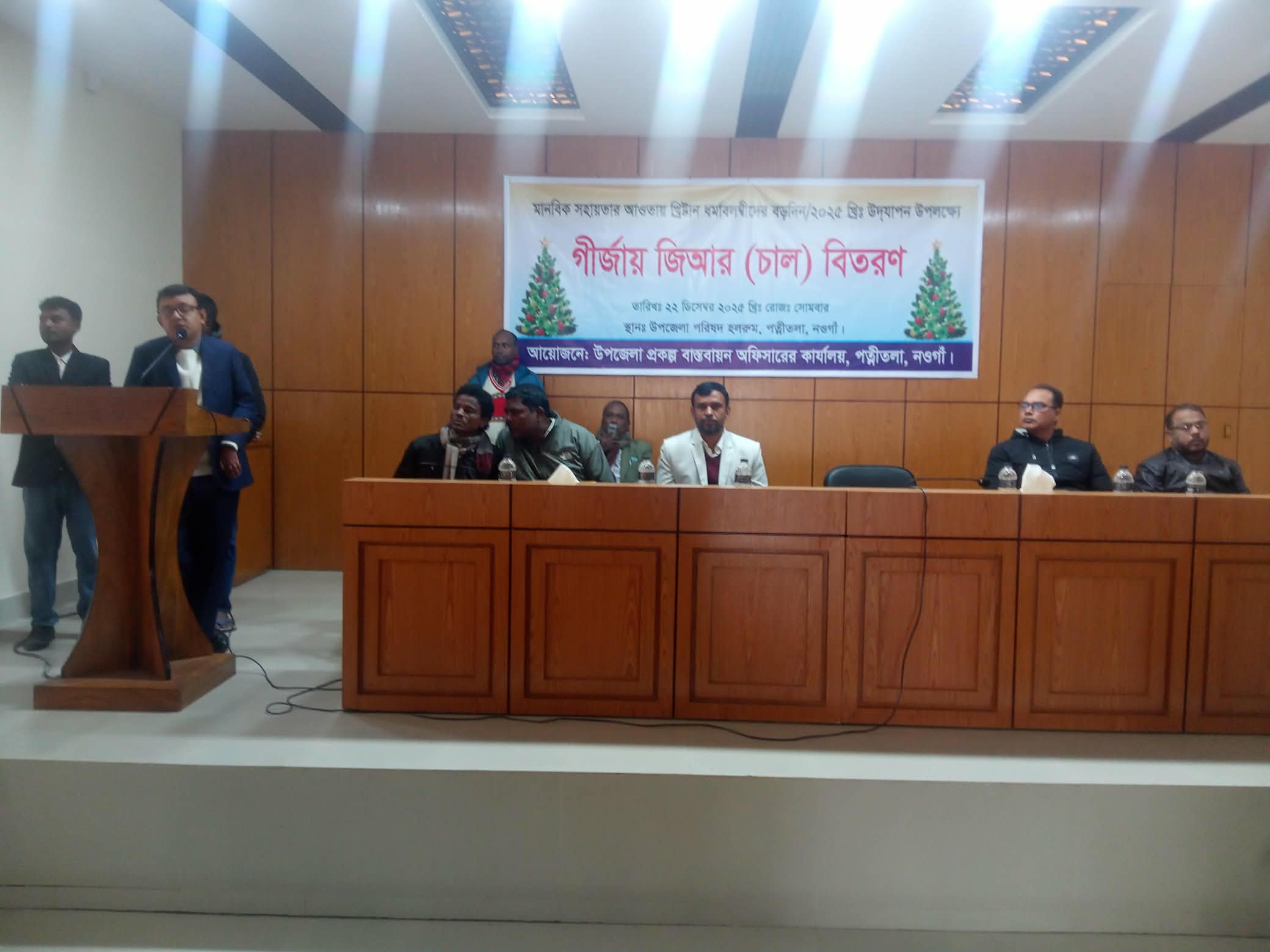 অনুষ্ঠানে প্রধান অতিথি হিসেবে উপস্থিত ছিলেন উপজেলা নির্বাহী কর্মকর্তা (ইউএনও) আলীমুজ্জামান মিলন, বিশেষ অতিথি হিসেবে উপস্থিত ছিলেন উপজেলা প্রকল্প বাস্তবায়ন কর্মকর্তা,উপজেলা হিন্দু ঐক্যফ্রন্টের সভাপতি ও সাধারণ সম্পাদক প্রমূখ উপস্থিত থেকে সংশ্লিষ্ট গির্জার প্রতিনিধিদের হাতে চালের ডিও (বরাদ্দপত্র) তুলে দেন উপজেলা প্রশাসনের ঊর্ধ্বতন কর্মকর্তাবৃন্দ। এসময় বক্তারা বলেন, বর্তমান সরকার সকল ধর্মের মানুষের ধর্মীয় উৎসব নির্বিঘ্নে ও আনন্দমুখর পরিবেশে উদযাপনের লক্ষ্যে নিরলস কাজ করে যাচ্ছে। বড়দিনের এই উপহার খ্রিস্টান সম্প্রদায়ের উৎসবকে আরও আনন্দময় করবে।