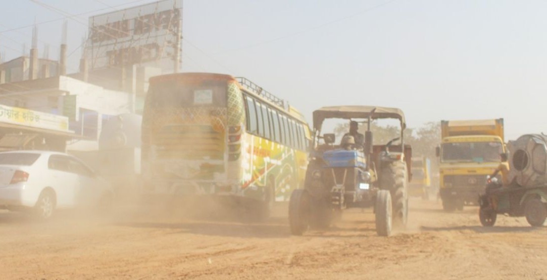 মহানগরজুড়ে বাতাসে ধুলাবালি ওড়ার দৃশ্য এখন প্রতিদিনের চিত্র। নিয়মনীতি উপেক্ষা করে চলমান উন্নয়নকাজ, সড়কে নির্মাণসামগ্রী ফেলে রাখা, ভাঙাচোরা সড়ক দীর্ঘদিন সংস্কার না করা এবং বর্জ্য ব্যবস্থাপনার অব্যবস্থাপনায় নগরীর বাতাসে ধূলিকণার পরিমাণ উদ্বেগজনকভাবে বাড়ছে। খুলনা সিটি কর্পোরেশন, ওয়াসা ও সড়ক বিভাগের কাজের পাশাপাশি ব্যক্তিগত নির্মাণকাজেও পরিবেশগত নির্দেশনা মানা হচ্ছে না । এর সঙ্গে যুক্ত হয়েছে যানবাহনের কালো ধোঁয়া, অবৈধ ইটভাটা, সড়কের পাশে ইট-বালু রেখে ব্যবসা এবং শিল্পকারখানার নির্গত ধোঁয়া। প্রতিদিনের এই দূষণে অতিষ্ঠ হয়ে উঠছে নগরবাসী।