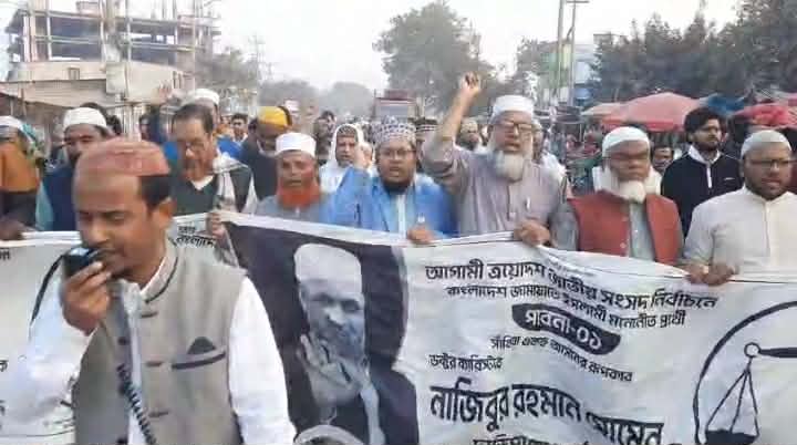 আসন্ন ত্রয়োদশ সংসদ নির্বাচনে প্রচারণার প্রথম দিন (২৮ জানুয়ারী), বেড়া পৌর জামায়াতের উদ্যোগে বেড়া সিএনবি বাসস্ট্যান্ড গোল চত্তরে আজ বিকেল সাড়ে চার টায় বিশাল মিছিল বের করা হয়।