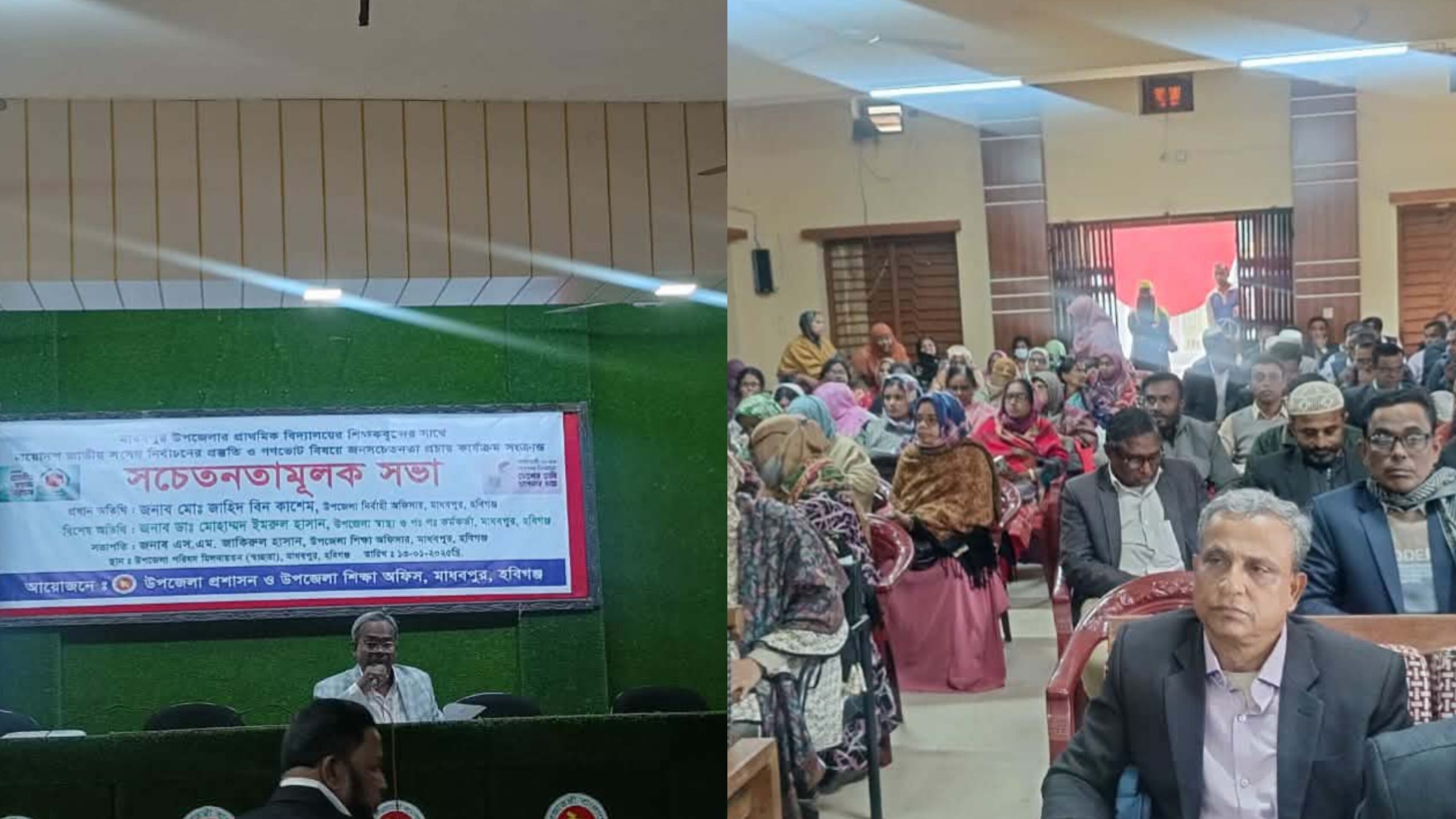 হবিগঞ্জের মাধবপুর উপজেলায় প্রাথমিক বিদ্যালয়ের শিক্ষকদের সঙ্গে আসন্ন দ্বাদশ জাতীয় সংসদ নির্বাচনের প্রস্তুতি ও গণভোট বিষয়ে জনসচেতনতা বৃদ্ধির লক্ষ্যে এক সচেতনতামূলক সভা অনুষ্ঠিত হয়েছে।