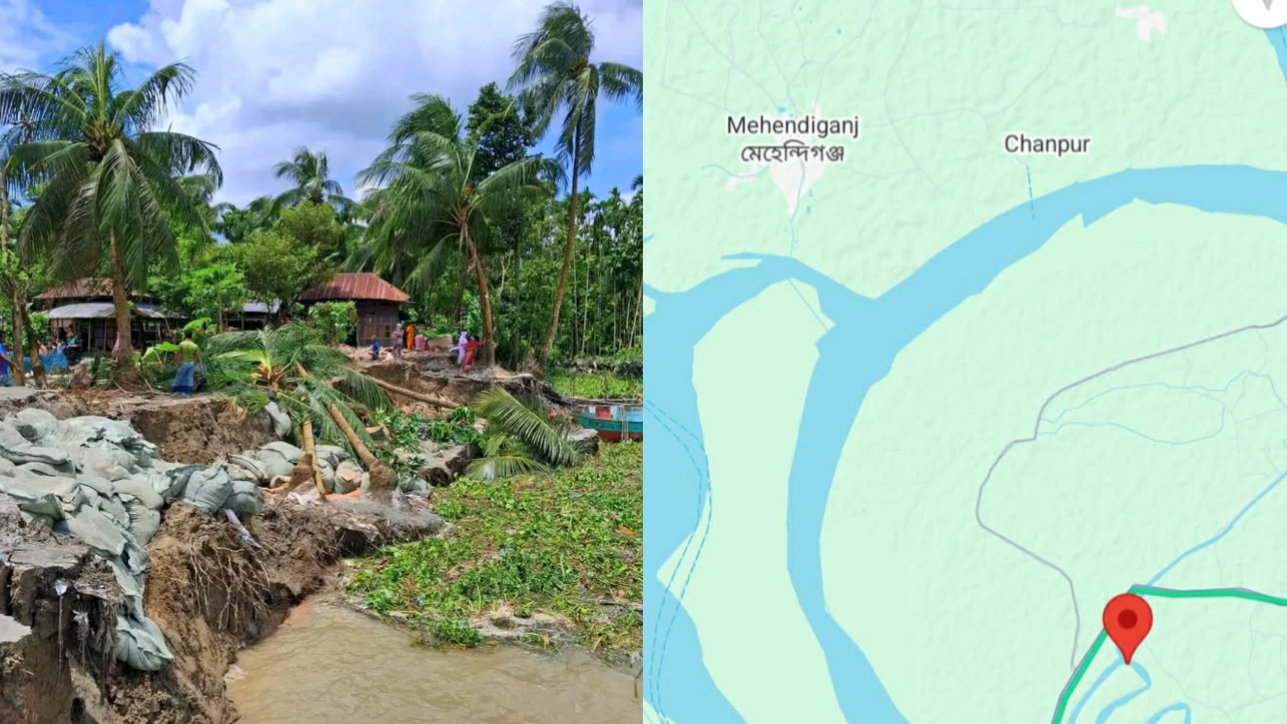 রাসেল কবির// বরিশালের মেহেন্দিগঞ্জ উপজেলা ১৬ টি ইউনিয়ন নিয়ে অন্তর্ভুক্ত।মেহেন্দিগঞ্জ উপজেলার চারপাশে ঘেরা নদ-নদী । আড়িয়াল খা , কালাবদর, তেতুলিয়া , পোলতা তলী ও লতার নদী স্রোতে কল গ্রাস করে ফসলি জমি, বসত ভিটে, হাটবাজার শিক্ষা প্রতিষ্ঠান সহ সর্বত্রই নদী গর্ভে বিলীন হচ্ছে। প্রতিবছর ভাঙ্গন রক্ষা করতে বিভিন্ন পদক্ষে ব্যবস্থা নিলেও নদী ভাঙ্গন ঠেকানো যাচ্ছেনা বলেই ধীরে ধীরে ছোট হয়ে আসছে মেহেন্দিগঞ্জের মানচিত্র। সর্বত্র মেহেন্দিগঞ্জ বাসির মতামত যে বাংলাদেশ ১৯৭১ সালে স্বাধীনতা অর্জন করে ১৬ ইং ডিসেম্বর। ৯ মাস যুদ্ধ করে বাংলাদেশ কে স্বাধীন দেশ বলে ঘোষণা করলেও ৯ মাসের ও বেশি সময় অতিবাহিত করে যুদ্ধ চলছে মেহেন্দিগঞ্জের মানচিত্রে। ১৯৭১ সালের স্বাধীনতার ঘোষণা হয়েছে মেহেন্দিগঞ্জে। কয়েক যুগ ধরে মেহেন্দিগঞ্জের মানচিত্র ছোট হয়ে যাচ্ছে নদী ভাঙ্গনের ফলে। জানাগেছে উপজেলার ১২ নং দড়িচর খাজুরিয়া ইউমিয়ন ও ১৫ নং আদর্শ নগর, ভাষানচর, বিদ্যানন্দনপুর, লতা, আন্দারমানিক ইউনিয়নের হাজারো হাজারো পরিবার নদী ভাঙ্গনে নিঃস্ব। এছাড়া মেহেন্দিগঞ্জের উলানিয়া, কালিগঞ্জ, পাতারহাট স্টিমার ঘাট, লঞ্চ ঘাট এলাকা নদী ভাঙ্গনে অব্যাহত রয়েছে। নদী ভাঙ্গনের ফলে হাজারো হাজারো হেক্টর জমি নদী গর্বে রক্ষা পাইনি কোন কিছুই। ভাষানচর ইউনিয়নের খলিশা পাড়া গ্রামের আব্দুর রাজ্জাক, আব্দুল খালেক, মহাসিন জানায় ৩ বার আমাদের বসতভিটা নদী গর্ভে চলে গেছে ৪ বার ঘর উঠেয়ে থাকতে হয়। আমরা বাগর ঝা বাসিন্দা ছিলাম। অনেকে বিভিন্ন স্থানে চলে গেছে। দুই চার খাজুরিয়া ইউনিয়নের নদীর পাড়ের বানের চর এলাকার বাসিন্দা মমতাজ বেগম, রাশিদা, আয়েশা দুঃখ প্রকাশ করে বলে নদীর এপার ভাঙ্গে ওপার গড়ে এইতো নদীর খেলা আমাদের করছে সর্বহারা। ১৫নং আদর্শ নগর ইউনিয়নের রহমান খান হাট,ও মকবুল খান বাজার এবং সাইক্লোন শেন্টার হতদরিদ্র জাকির হাওলাদার, রফিক বলে আমাদের যা হারিয়ে যাবার হারিয়ে গেছে এখন শুধু আমাদের পরিবারগন আছে নদীতে নদী গর্ভ এক সময় আমরা হয়ে যাব। স্থানীয় মহলের দাবি এই শীত মৌসুমে নদীর স্রোত কম থাকার ফলে এই সময় বিভিন্ন পদক্ষে ব্যবস্থার মাধ্যমে মেহেন্দিগঞ্জের নদী ভাঙ্গন রক্ষা করতে ও মানচিত্র স্থির রাখতে হলে আরো প্রযুক্তির ব্যবহার কর জরুরী বলে মনে করেন। এ বিষয়ে বিদ্যানন্দনপুর ইউপি চেয়ারম্যান শাহ আলম মীর, ১৫ নং আদর্শ নগর ইউপি চেয়ারম্যান মোঃ মনির হোসেন হাওলাদার নদী ভাঙ্গন রক্ষা করতে ঊর্ধ্বতন কর্তৃপক্ষের নিকট সর্বত্র জানানো হয়। সরকার সময়মতো প্রয়োজনীয় ব্যবস্থা গ্রহণ করে থাকে। আন্দার মানিক ইউনিয়নের একাধিক ইউপি সদস্য বলেন ছোটবেলা থেকে দেখে এসেছি মেহেন্দিগঞ্জের মানচিত্র ছোট হতে যাচ্ছে। মেহেন্