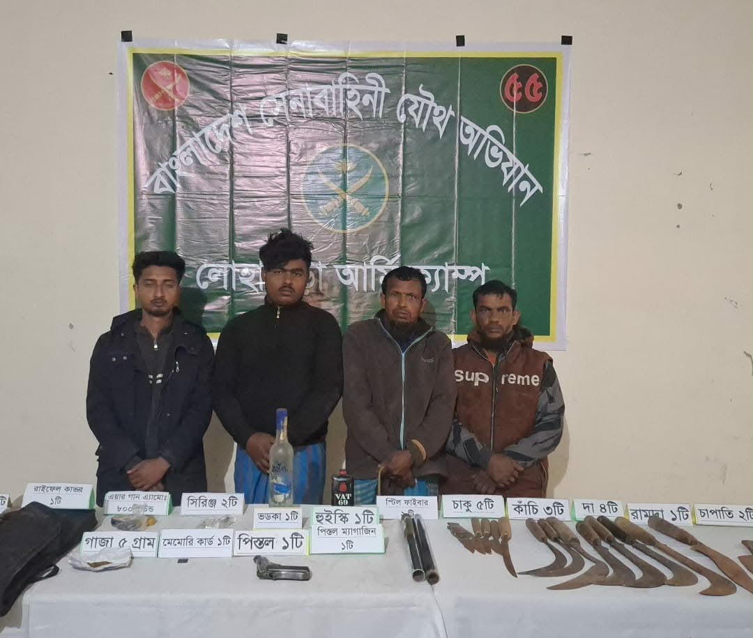 নড়াইলের লোহাগড়ায় আগ্নেয়াস্ত্র, গুলি ও বিপুল পরিমাণ দেশীয় অস্ত্রসহ চারজনকে গ্রেফতার করেছে যৌথ বাহিনী।
