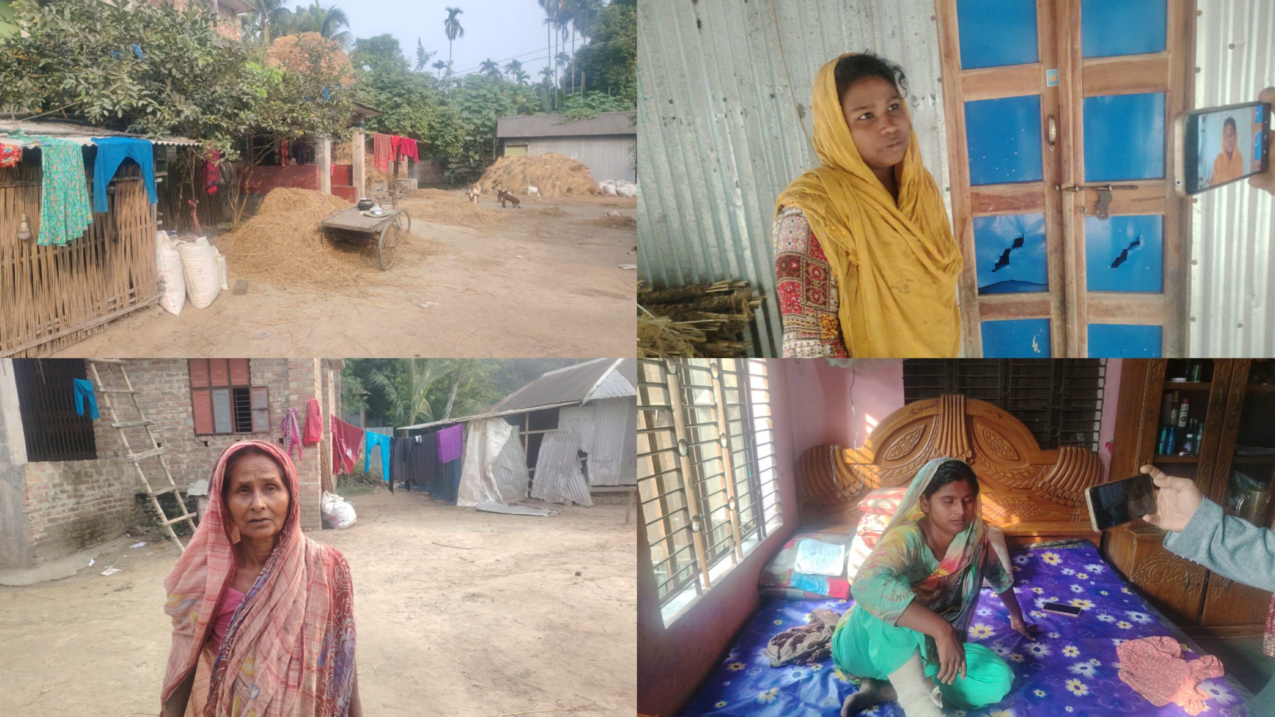 ইউনুস কাজির স্ত্রী নাসিমা বেগম, রমজান কাজির স্ত্রী সামিরা খাতুন, স্ত্রী জবেদা বেগম, সহ কয়েক বলেন শনিবার রাত আনুমানিক ১১ টার দিকে আমাদের প্রতিপক্ষ মৃধা গ্রুপের লোকজন আমাদের বাড়িতে হামলা করে মালামাল লুট করে নিয়ে যায়। নাসিমা বেগম বলেন আমার তিনটি গরু নিয়ে গিয়েছে, জবেদা খাতুন বলেন আমারও একটি গরু নিয়ে গিয়েছে। কোন পুরুষ ছেলে রাতে বাড়ি থাকে না সেই সুযোগে প্রতিপক্ষ মৃধা গ্রুপের লোকজন রাতের অন্ধকারে আমাদের বাড়ি লুটপাট করে। আমরা এই লুটপাটের বিচার চাই। আমরা শান্তিতে বসবাস করতে চাই।