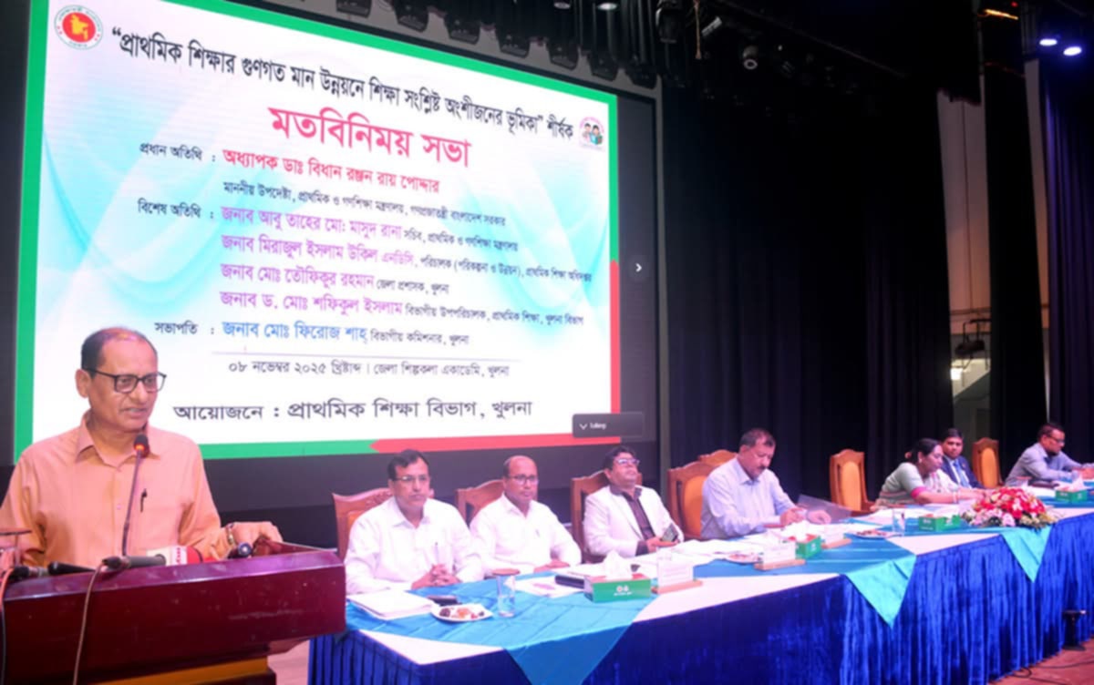 আজ (শনিবার) দুপুরে খুলনা জেলা শিল্পকলা একাডেমি অডিটোরিয়ামে ‘প্রাথমিক শিক্ষার গুণগত মান উন্নয়নে শিক্ষা সংশ্লিষ্ট অংশীজনের ভূমিকা’ শীর্ষক মতবিনিময় সভায় প্রধান অতিথির বক্তৃতায় একথা বলেন।
