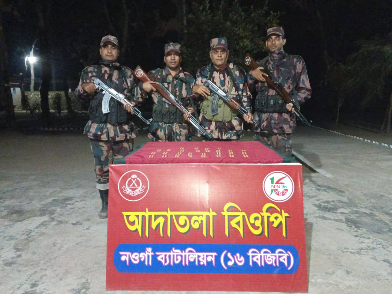 নওগাঁ জেলার সাপাহার থানার অন্তর্গত অত্র ব্যাটালিয়নের অধীনস্থ আদতলা বিওপির টহল কমান্ডার হাবিলদার আব্দুর রকিব খান এর নেতৃত্বে একটি বিশেষ টহল দল সুরাইল নামক মাঠের মধ্যে অভিযান পরিচালনা করে মালিকবিহীন অবস্থায় ২৫৫ পিস ভারতীয় ট্যাপেন্টাডল ট্যাবলেট আটক করতে সক্ষম হয়। আটককৃত ভারতীয় ট্যাপেন্টাডল ট্যাবলেট সাপাহার থানায় জমা দেওয়া হয়েছে।