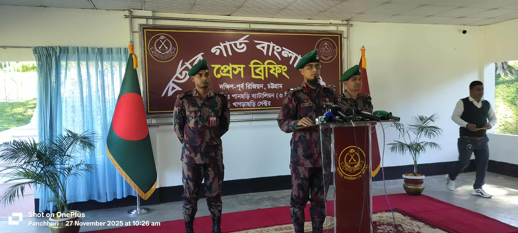 তিনি আরও বলেন, শান্তি প্রতিষ্ঠায় দায়িত্ব পালনকালে এখন পর্যন্ত পার্বত্য চট্র্রগ্রামে ১১০ জন বিজিবি সদস্য শহীদ হয়েছেন। সীমান্ত নিরাপত্তায় বিজিবি সর্বোচ্চ সতর্ক অবস্থানে আছে এবং স্থানীয় জনগণের সহযোগিতায় নিরাপত্তা ব্যবস্থাকে আরও শক্তিশালী করা হচ্ছে। ‎বিজিবি সীমান্ত রক্ষার পাশাপাশি পার্বত্য চট্টগ্রামে সন্ত্রাসী কার্যক্রম, অবৈধ অস্ত্র এবং সম্প্রীতি বিনষ্টকারী অপতৎপরতা দমনে সক্রিয়ভাবে অংশ নিচ্ছে। অস্ত্র উদ্ধারে নিয়মিত অভিযান পরিচালনার পাশাপাশি বিজিবি অতীতে উল্লেখযোগ্য পরিমাণ অস্ত্র–গোলাবারুদ উদ্ধার করেছে। ‎খাগড়াছড়িতে সাম্প্রতিক সহিংসতায় বিজিবি অত্যন্ত পেশাদারিত্ব ও সংযম প্রদর্শন করেছে। খাগড়াছড়ি সদর, গুইমারা ও রামগড়ে বিজিবি পরিস্থিতি স্বাভাবিক রাখতে সক্রিয় ভূমিকা রাখে। ‎গত ৫ অক্টোবর গুইমারার জালিয়াপাড়া বাজারে ভয়াবহ অগ্নিকাণ্ডে ১০–১২টি দোকান ক্ষতিগ্রস্ত হয়। ‎বিজিবি, সেনাবাহিনী, ফায়ার সার্ভিস ও স্থানীয় বাসিন্দাদের যৌথ প্রচেষ্টায় মাত্র এক ঘন্টায় আগুন নিয়ন্ত্রণে আনা হয়। ‎বিজিবি শুধু নিরাপত্তাই নয়, সীমান্তবর্তী জনসাধারণের জীবনমান উন্নয়নেও কাজ করে যাচ্ছে। চলতি মাসে ১০০৬ জনকে আর্থিক অনুদান, ১৯ জনের ঘর নির্মাণে ঢেউটিন প্রদান, ৪৩টি ধর্মীয় প্রতিষ্ঠানে অনুদান, পুলিশ ক্যাম্পে টয়লেট নির্মাণে সহায়তা, ১৮ জনকে সেলাই প্রশিক্ষণ, ৫৯০ জনকে শীতবস্ত্র বিতরণ, ২টি মেডিক্যাল ক্যাম্পে ৭৪৪ জনকে চিকিৎসা ও ওষুধ প্রদান, ২১ জনকে কৃষি উপকরণ, ২৩০২ জন শিক্ষার্থীকে শিক্ষা উপকরণ প্রদান করা হয়েছে। এই মানবিক কর্মকাণ্ড সীমান্ত অঞ্চলে শান্তি, সম্প্রীতি ও আস্থা তৈরিতে বড় ভূমিকা রাখছে বলে লোগাং জোন অধিনায়ক জানান।