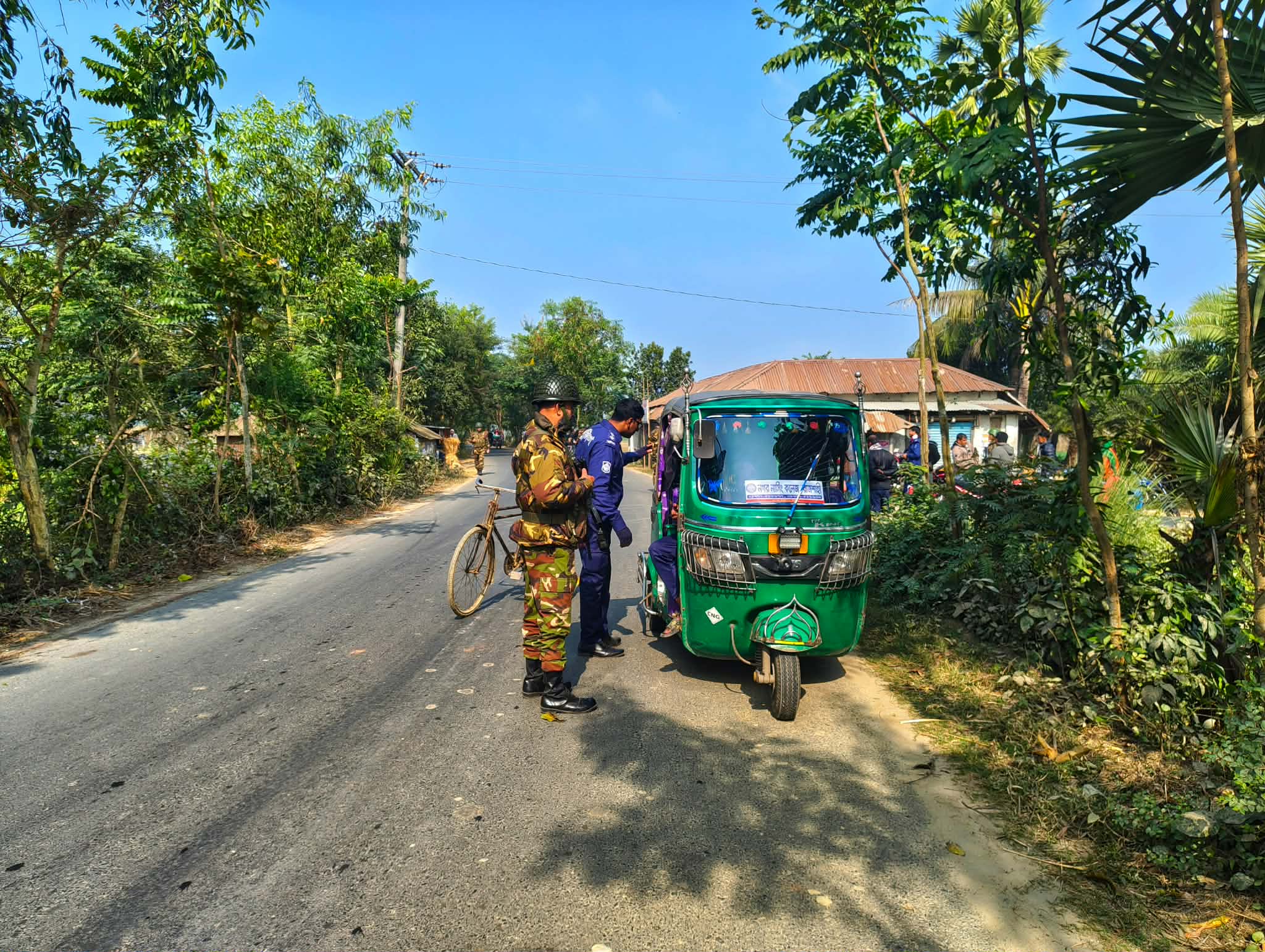 রাজশাহীর দুর্গাপুর সেনাবাহিনী, পুলিশের যৌথ অভিযান, চেকপোস্টে ট্রাফিক আইন অমান্য করায় মামলা ও গাড়ি জব্দ করেছে যৌথ বাহিনী।