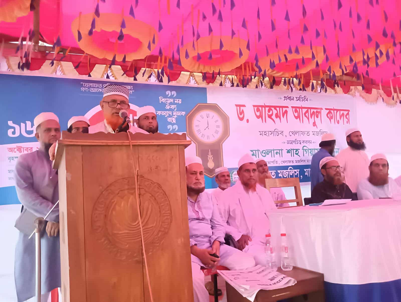 ড. আহমদ আব্দুল কাদের তাঁর বক্তৃতায় বলেন, “বাংলার মাটিতে অবশ্যই পতিত স্বৈরাচারী সরকার ও তাদের দোসরদের বিচার হবে। এদেশে আর যাতে নতুন কোনো স্বৈরাচারের জন্ম না হয়—এর জন্য খেলাফত মজলিস কাজ করে যাবে। দেশের স্বাধীনতা ও সার্বভৌমত্ব রক্ষায় খেলাফত সর্বশক্তি নিয়োগ করবে।”মাধবপুরবাসীকে ভোটের আহ্বান জানিয়ে বক্তব্য শেষ করেন।