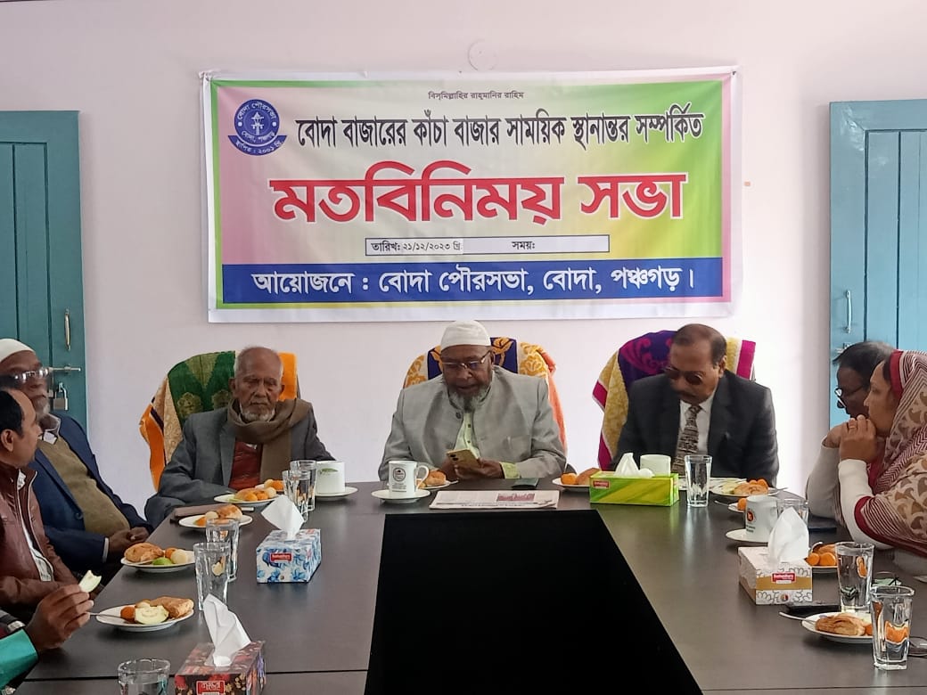 বোদা বাজারের কাঁচা বাজার সাময়িক স্হানান্তর সম্পকিত মতবিনিময় সভা অনুষ্ঠিত।