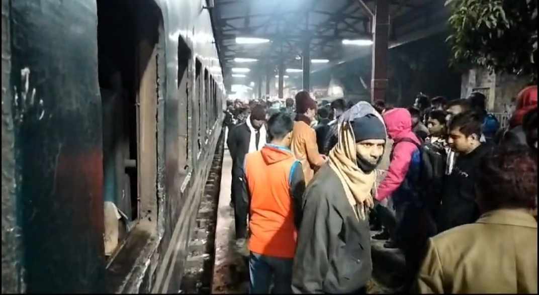 জয়পুরহাটে উত্তরা মেইল ট্রেনের একটি বগিতে দুর্বৃত্তদের আগুন