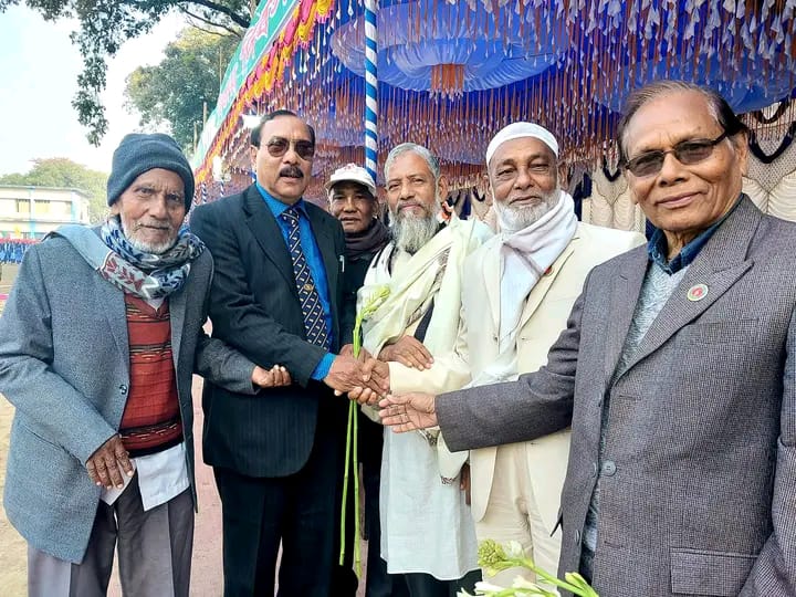 বোদায় মহান বিজয় দিবসে বীর মুক্তিযোদ্ধাদের সাথে ফুলের শুভেচ্ছা বিনিময়।