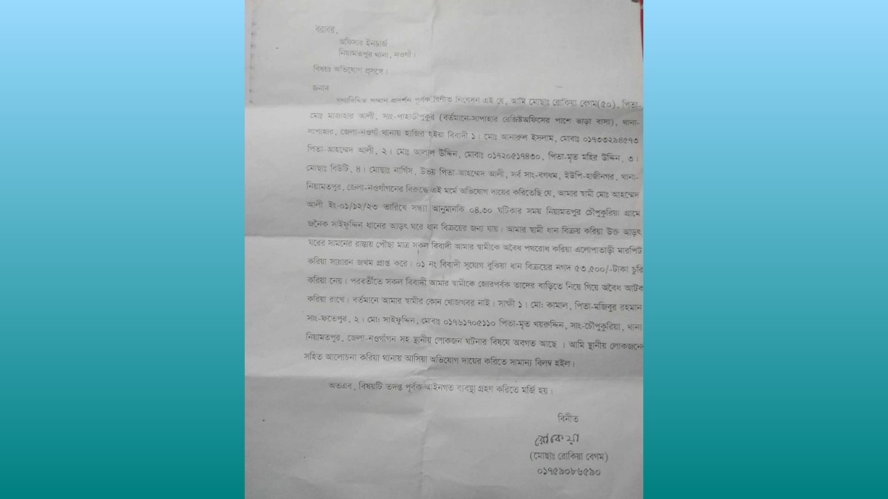 সাপাহারে বসবাস করায় মারধর ও গুমের শিকার এক বৃদ্ধ