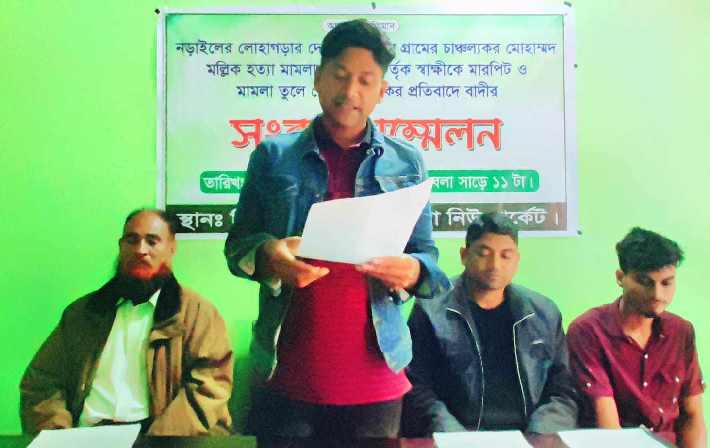 লোহাগড়ায় হত্যা মামলার বাদীকে হত্যার হুমকির প্রতিবাদে বাদীর সংবাদ সম্মেলন