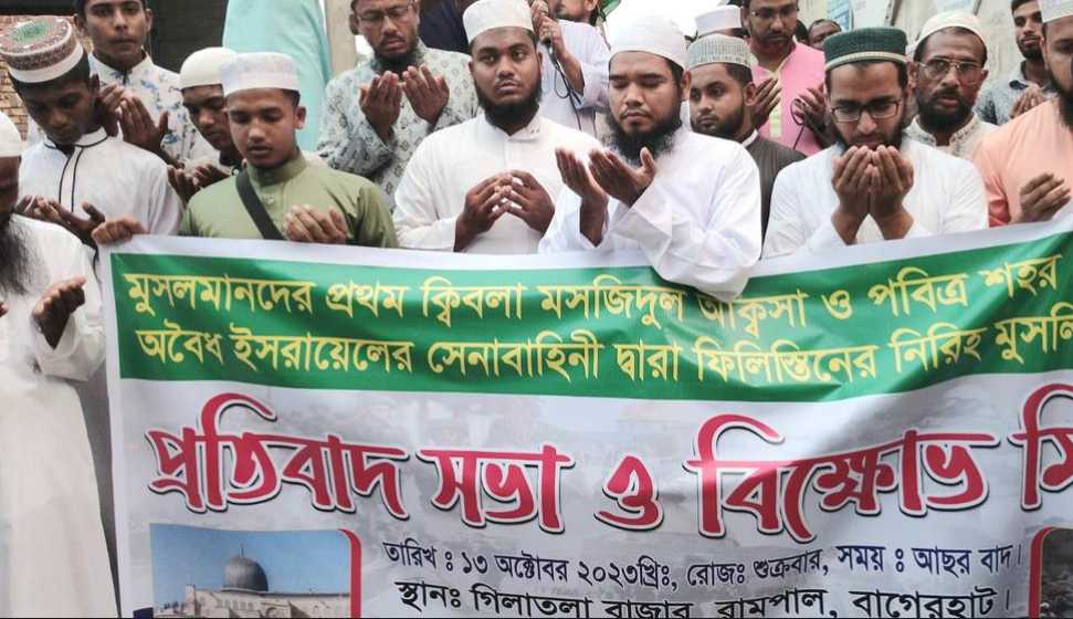 বাগেরহাট রামপালের ফিলিস্তিনিদের ওপর বর্বোরোচিত হামলার প্রতিবাদে বিক্ষোভ মিছিল।