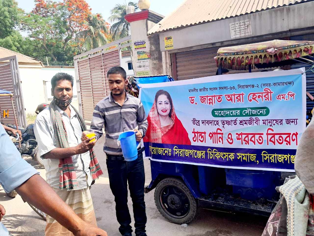 প্রচন্ড গরমে সুপেয় পানি ও শরবত বিতরন করলেন সিরাজগঞ্জ জেলা…
