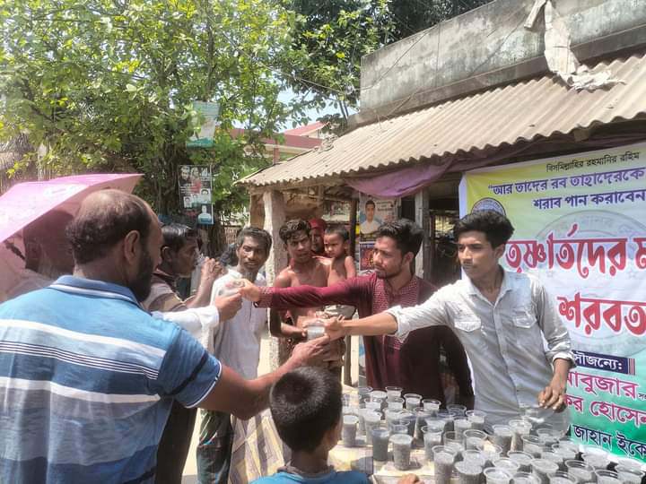 তীব্র গরমে ফুলতলা বাজারে বিশুদ্ধ পানি ও শরবত বিতরণ ।