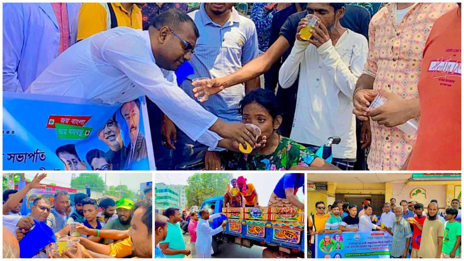 প্রচন্ড গরমে সুপেয় পানি ও শরবত বিতরন করলেন সিরাজগঞ্জ জেলা স্বেচ্ছাসেবকলীগ।