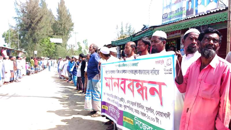 সুবর্ণচরে অনুপস্থিতি বন্দোবস্ত বাতিলের দাবিতে মানববন্ধন