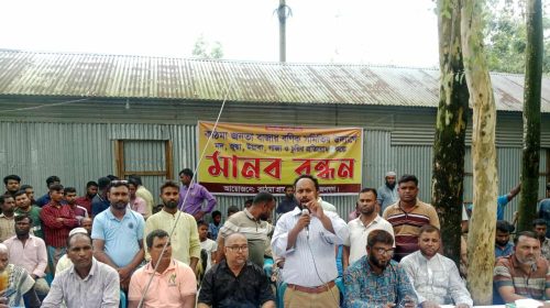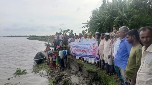 ফুলছড়িতে নদীভাঙন বসতবাড়ি ও আবাদি জমি রক্ষায় মানববন্ধন।