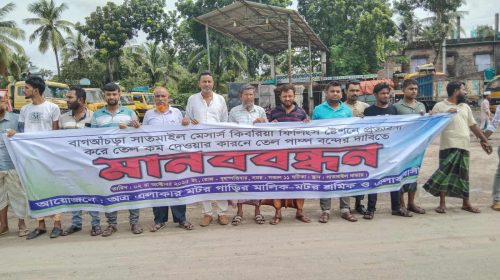 যশোরে ফিলিং স্টেশনে প্রতারণার অভিযোগ, বাগআঁচড়ায় বিক্ষোভ-মানববন্ধন।