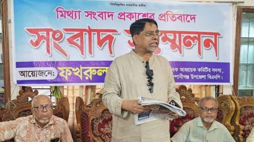কোম্পানীগঞ্জে মিথ্যা সংবাদ প্রকাশের প্রতিবাদে বিএনপির নেতা ফখরুল ইসলামের সংবাদ সম্মেলন।