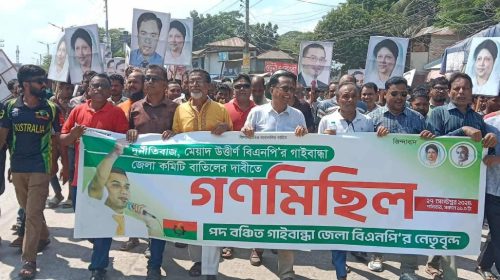 গাইবান্ধা জেলা বিএনপি’র মেয়াদ উত্তীর্ণ কমিটি বাতিলের দাবিতে গণমিছিল।