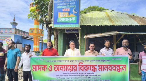 বাউফলে মাদক ও অন্যায়ের বিরুদ্ধে মানববন্ধন।