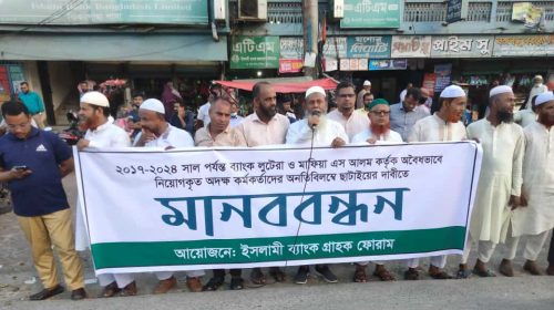 অবৈধ নিয়োগ বাতিলের দাবিতে মানববন্ধন ঝিকরগাছায়।