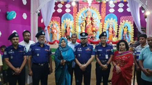 দোয়ারাবাজারের পূজা মণ্ডপ পরিদর্শন করলেন ডিআইজি মো. মুশফেকুর রহমান।