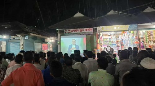 বিবিসি বাংলার তারেক রহমানের সাক্ষাৎকার তজুমদ্দিনে প্রজেক্টেরের মাধ্যমে প্রচার।