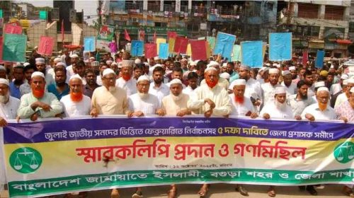 বগুড়ায় জামায়াতের ৫ দফা দাবিতে গণমিছিলে নেতাকর্মীর ঢল।