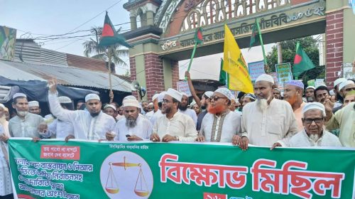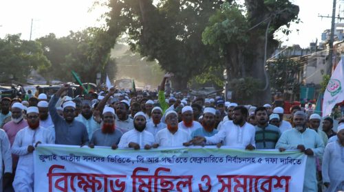 পাঁচবিবিতে জামাতের উদ্যোগে পিআর পদ্ধতির নির্বাচনের দাবিতে বিক্ষোভ মিছিল।