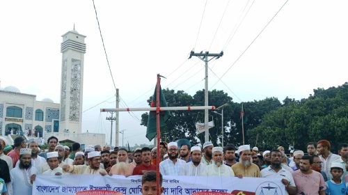 মাদারগঞ্জে জামায়াতে ইসলামী’র বিক্ষোভ মিছিল ও সমাবেশ।